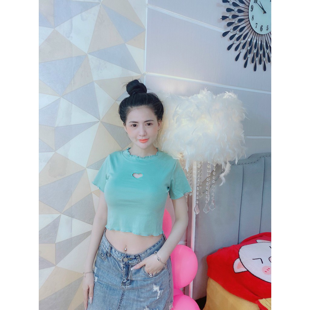Áo kiểu croptop cuốn biên nhẹ khoét tim ngực cực xinh , chất thun thái mềm mịn