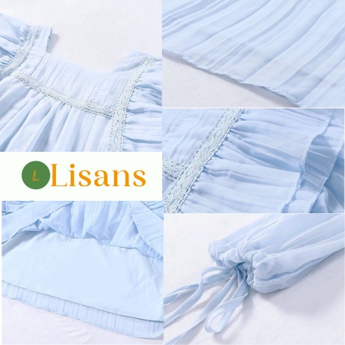 Áo sơ mi nữ cổ tàu tay bồng có dây buộc sau tôn dáng, Áo kiểu tiểu thư Hàn Quốc