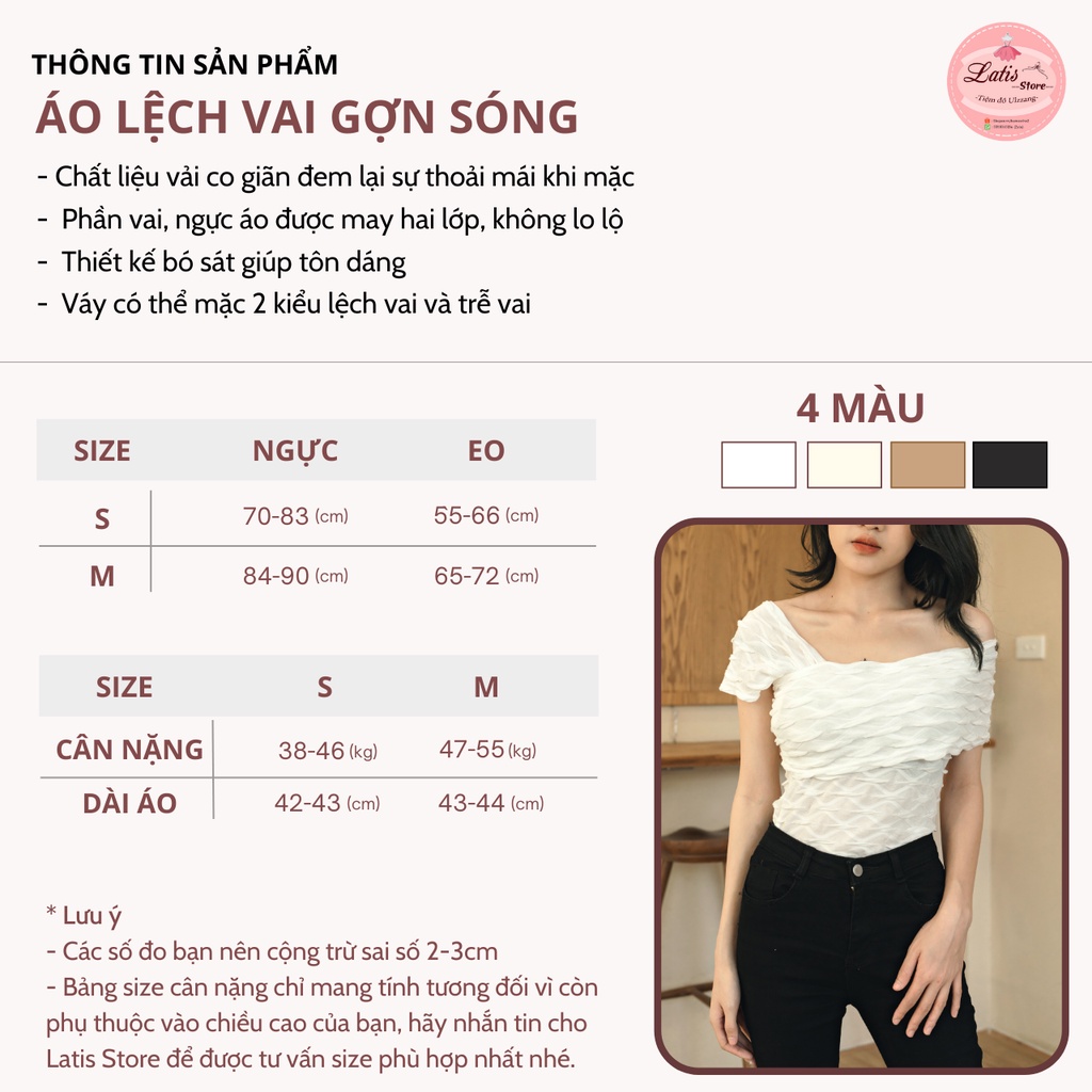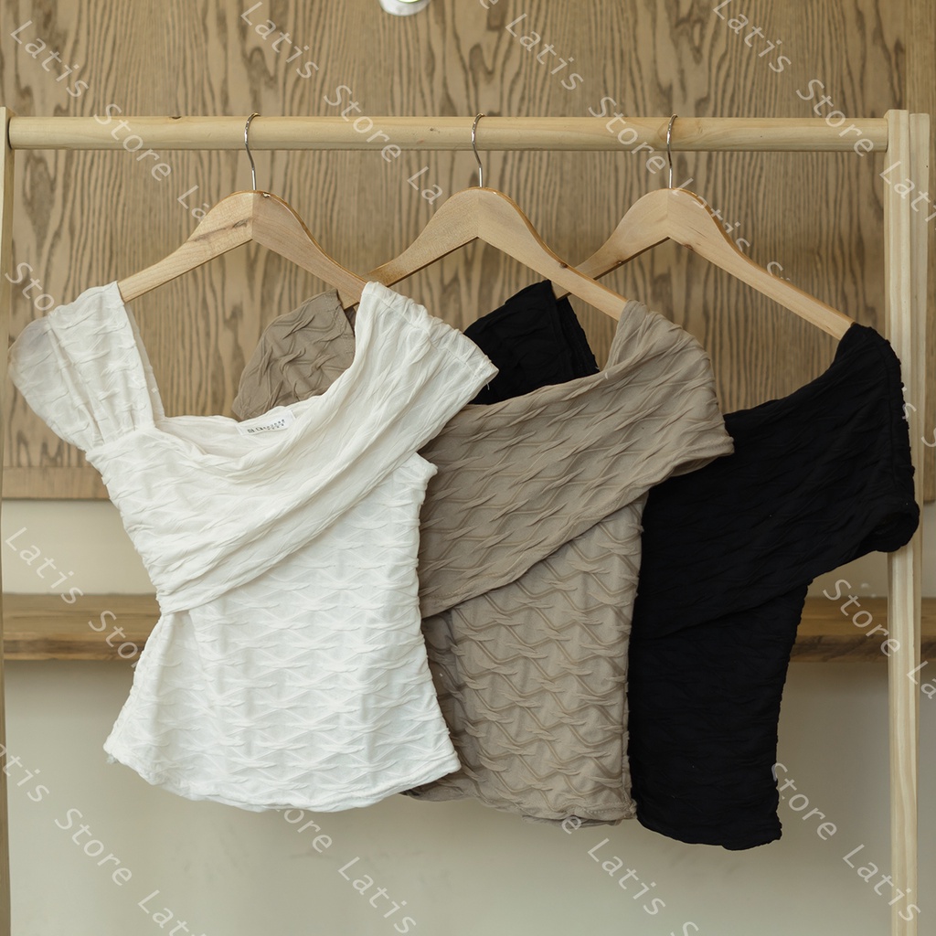 Áo Kiểu Nữ Lệch Vai Gợn Sóng, Áo Thun Trễ Vai Nữ Hàng Quảng Châu Cao Cấp Phong Cách Ulzzang - Latis Store