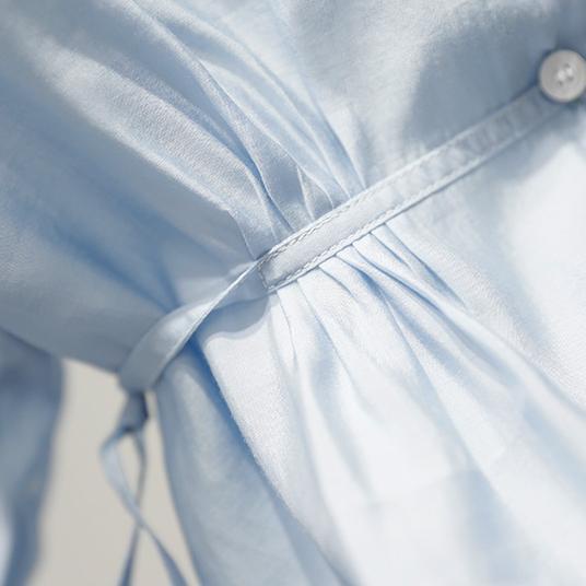 Áo kiểu SUXI tay dài phồng cổ chữ V xẻ sâu có dây thắt nơ thời trang mùa thu thanh lịch dành cho nữ