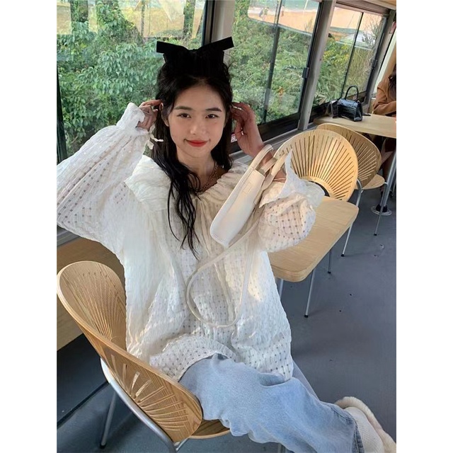 Áo sơ mi nữ cổ bèo tay lỡ Xuu, phong cách tiểu thư vải tăm thái SP10