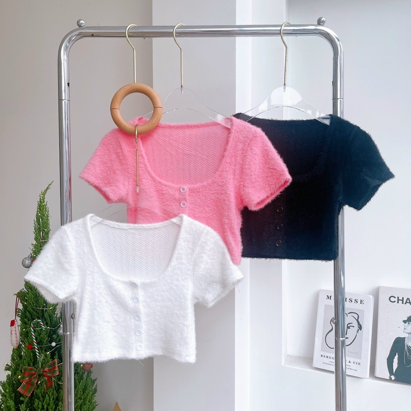 Áo Lông Cổ Vuông Ngắn Tay Chất Mềm Mịn QC