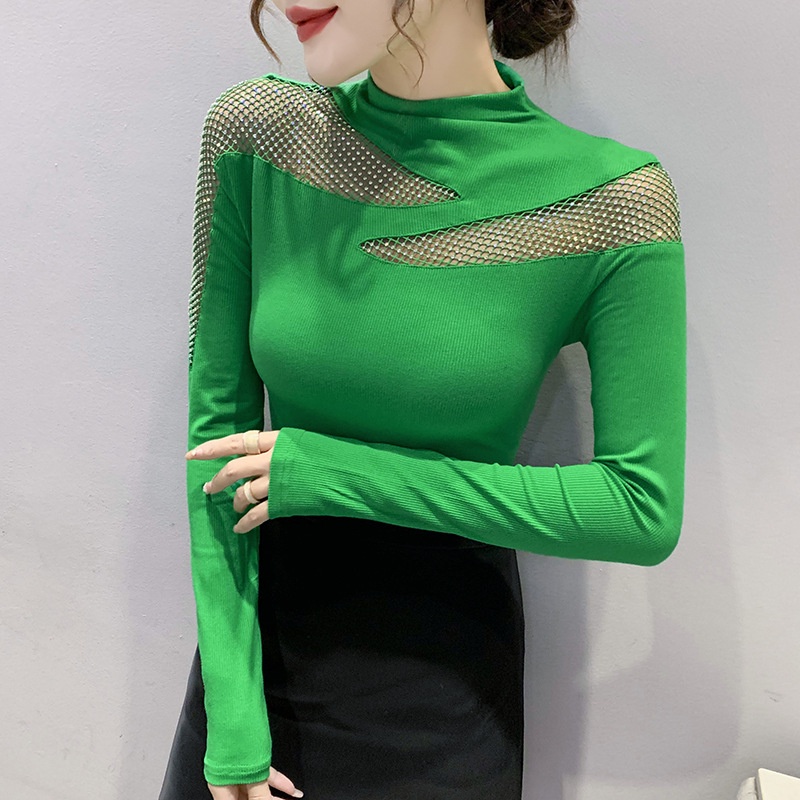 Áo lưới dài tay Áo thun dài tay nữ Cổ Cao Đính Đá Sang Trọng Hợp Thời Trang