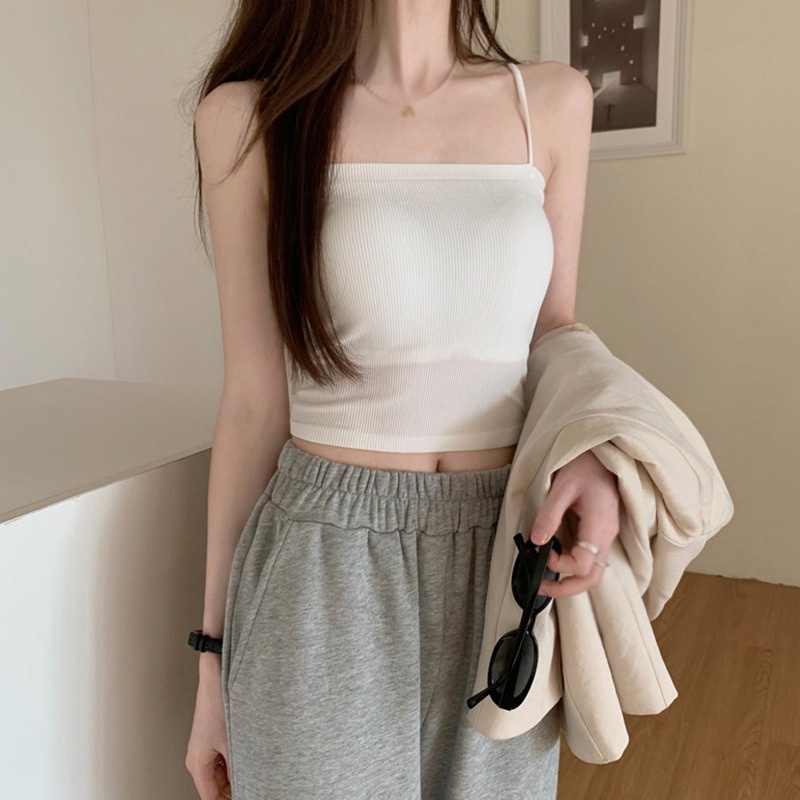Áo Lửng Hai Dây Có Mút Đệm Ngực Phong Cách Hàn Quốc Quyến Rũ Dành Cho Nữ