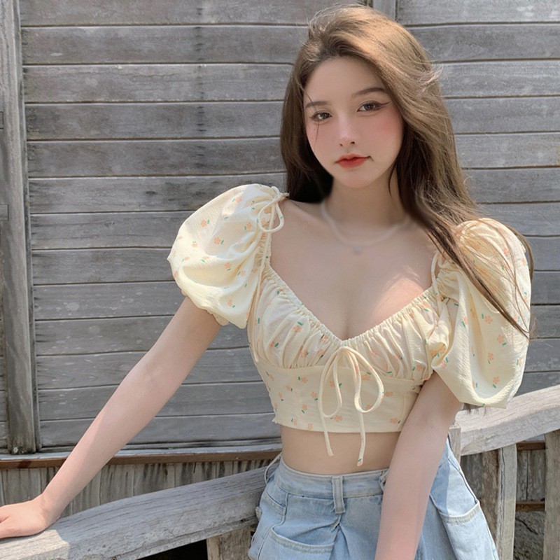 Thời gian giao hàng dự kiến cho sản phẩm này là từ 7-9 ngày Mô tả Sản phẩm: Độ dài quần áo: NGẮN Phong cách tay áo: Tay áo phồng Chất liệu: Polyester Phong cách: Ngọt ngào Chiều dài tay áo (cm): NGẮN Loại cổ áo: cổ chữ V Loại họa tiết: Hoa Độ tuổi phù hợp: 18