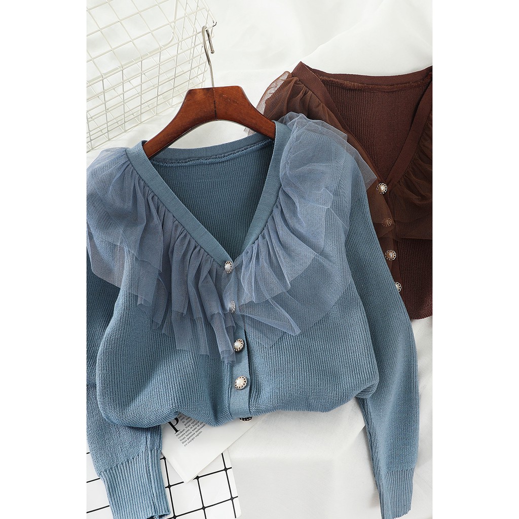 🎀Áo len cổ bèo, cúc giữa tay dài xinh xắn QC31