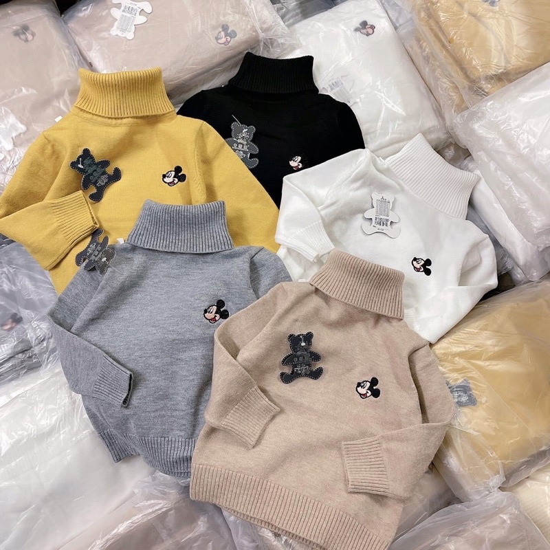 Áo len cao cổ cho bé trai và bé gái 1-7 tuổi, áo len cổ lọ nhiều màu