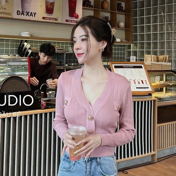 Áo Len Cardigan Dài Tay Áo Kiểu Chất Len Gân Cổ Tim Phối Khuy Cúc Nắp Túi Thu Đông Vải Dày Dặn Ailee