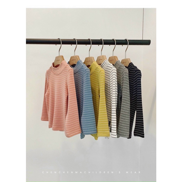 ÁO LEN GIỮ NHIỆT CHO BÉ CỔ 3 PHÂN HOẠ TIẾT KẺ NGANG