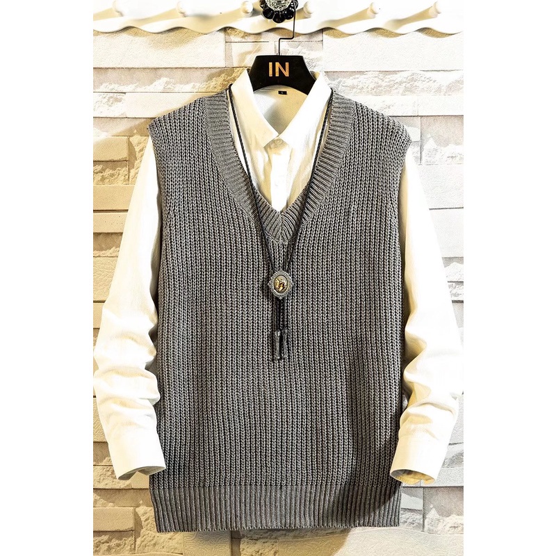 Áo len không tay cổ chữ V dáng rộng thời trang mùa thu Hàn Quốc trẻ trung dành cho nam