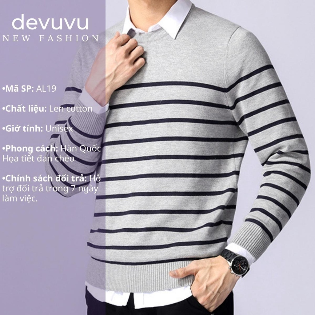 Áo len nam cổ tròn Hàn Quốc LENVIE form đẹp họa tiết kẻ ngang AL16