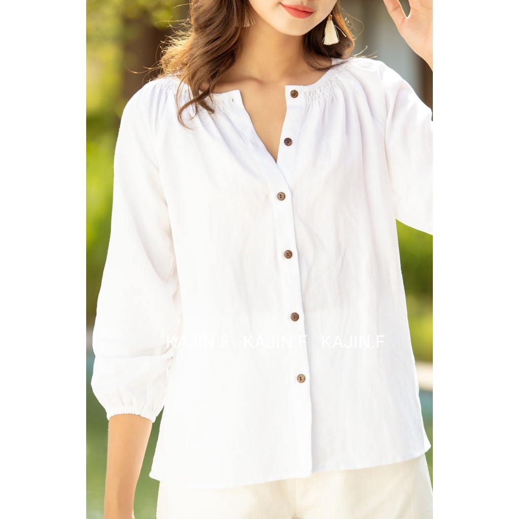 Áo kiểu nữ linen tưng LAHSTORE thiết kế form rộng cổ tròn tay cánh dơi