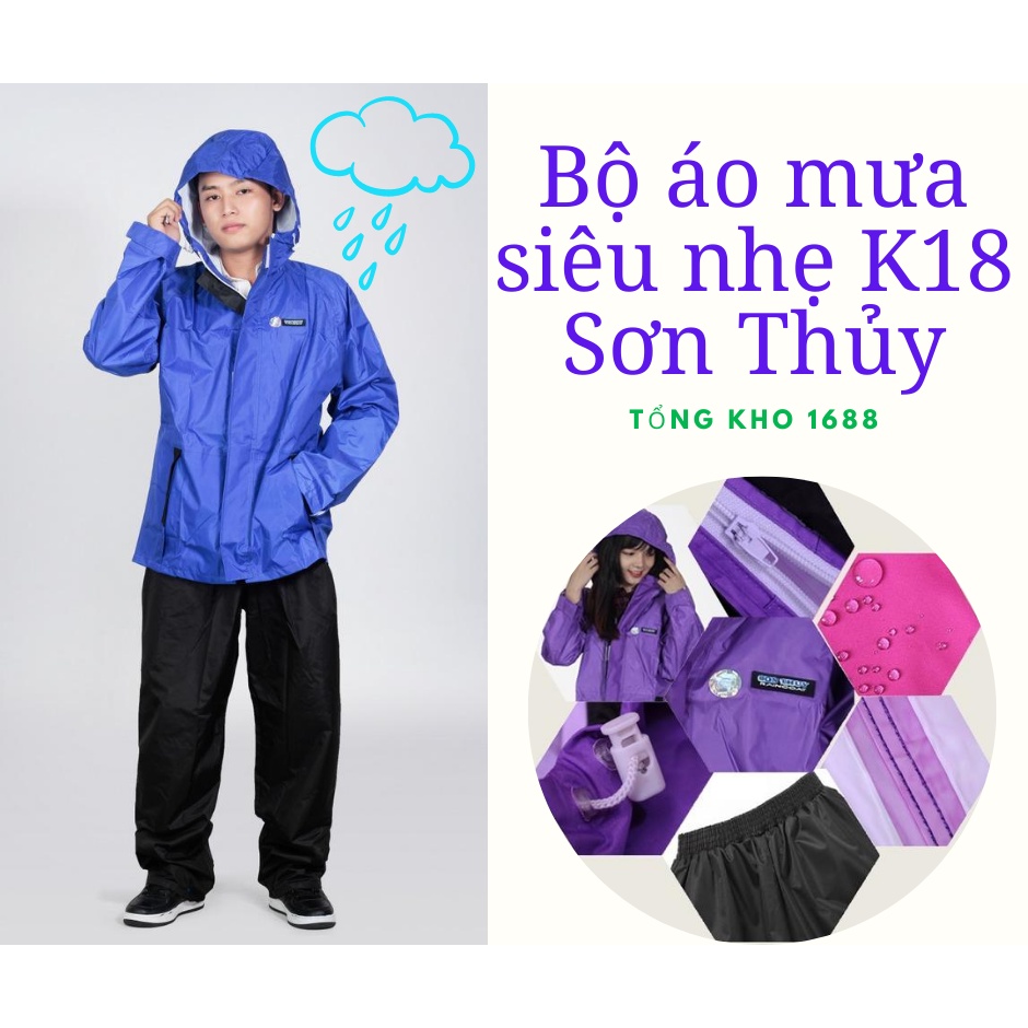 Áo mưa bộ thời trang Sơn Thủy K18, bộ quần áo mưa siêu nhẹ nhiều màu cho mọi lứa tuổi
