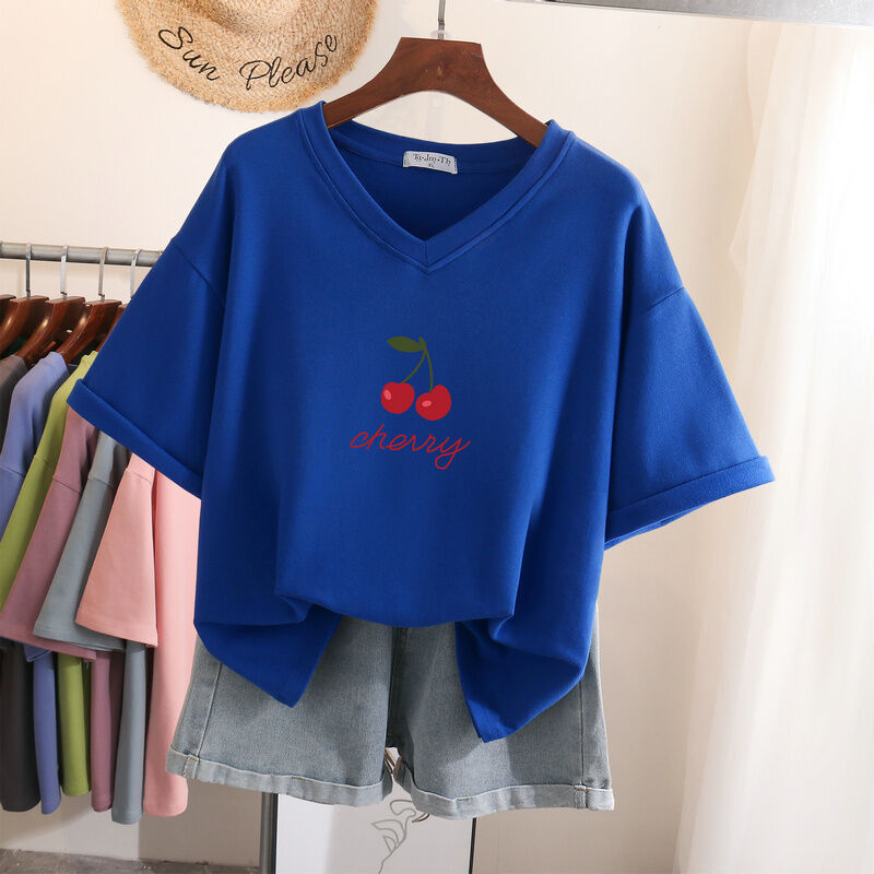 Áo Phông 2023 Cotton Cho Cô Nàng Mập Cỡ Lớn Ít Người Biết Cảm Giác Thiết Kế Trang Phục Mùa Hè Ngắn Tay Cho Nữ Áo Cổ V Che Bụng Rộng Rãi Mẫu Mới Sành Điệu