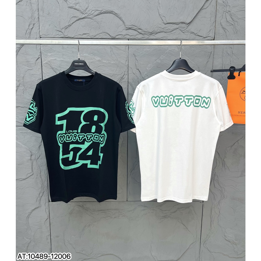 Áo phông LV1854 họa tiết logo in chìm phối cánh tay đẳng cấp 2 màu đen trắng