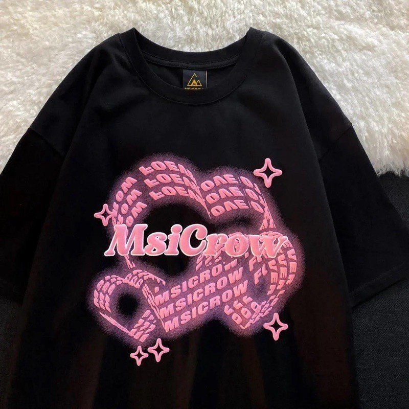 Áo phông trái tim in nổi M.s.i.C.r.o.w Form áo unisex nam nữ đều mặc được.,hn