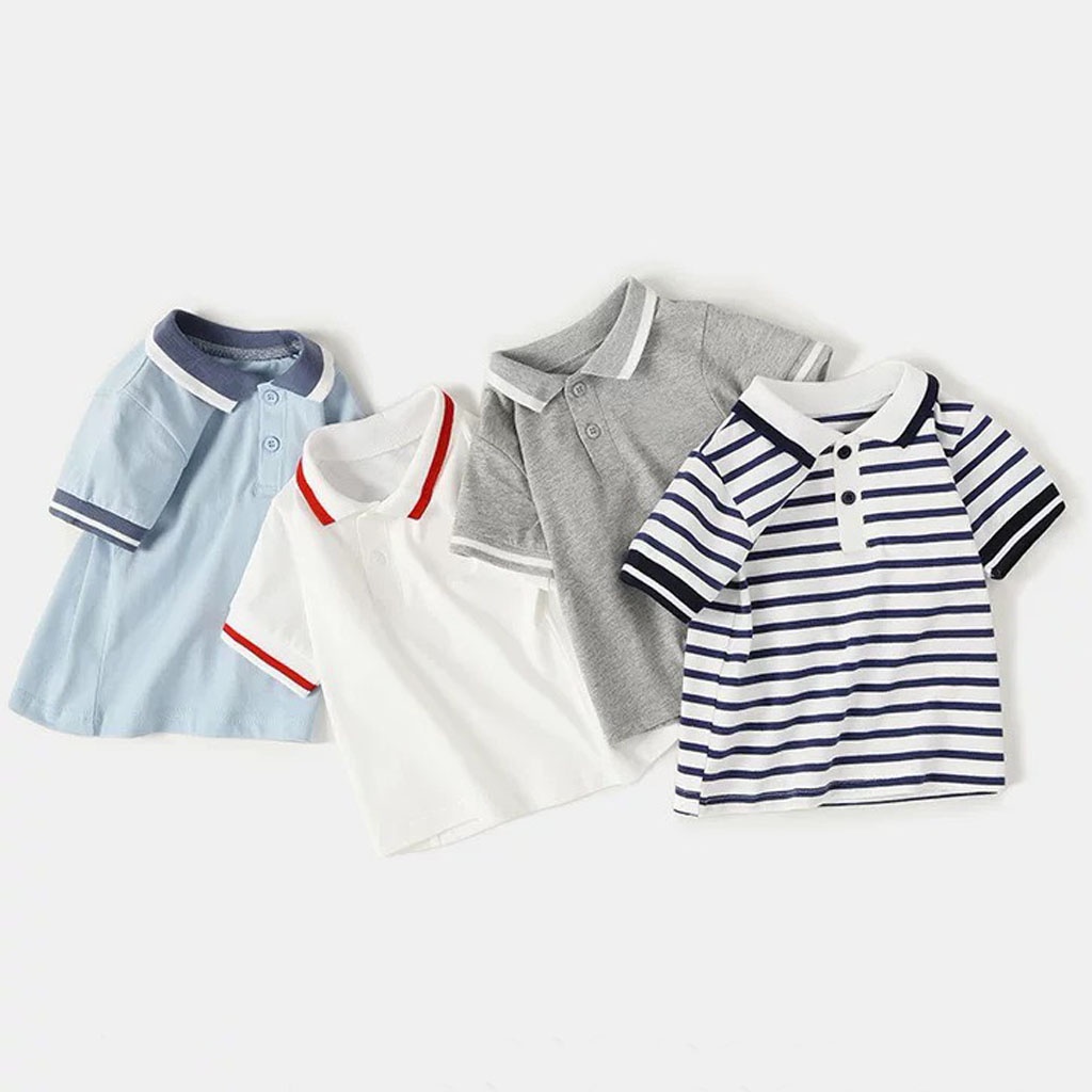 Áo Polo Cổ Kẻ cho bé Chất cotton cao cấp Kangmin kids, áo phông sơ mi cộc tay bé trai có cổ họa tiết trơn từ 6-28kg QA01