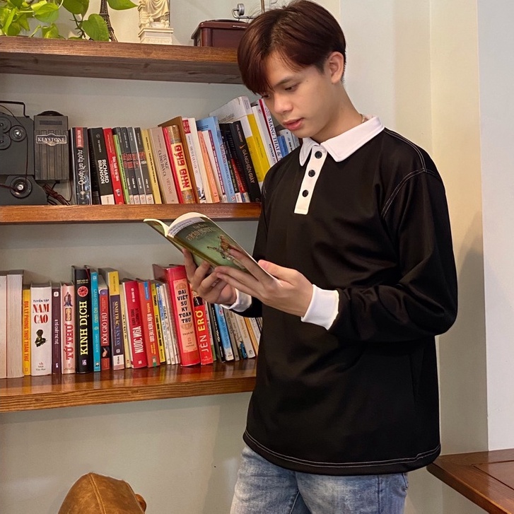THÔNG TIN SẢN PHẨM: Áo Polo Dài Tay Phối Chỉ Nổi Chất Cotton Cao Cấp,Áo Sweater Cổ Bẻ Phối 2 Màu Đen Trắng Phong Cách Hàn Quốc - Màu sắc: Đen, trắng - Chất Liệu Vải : chất nỉ đẹp mịn ko xù - Áo thiết kế khoá cổ trể trung, from cánh rơi tay to hottrend trẻ tru