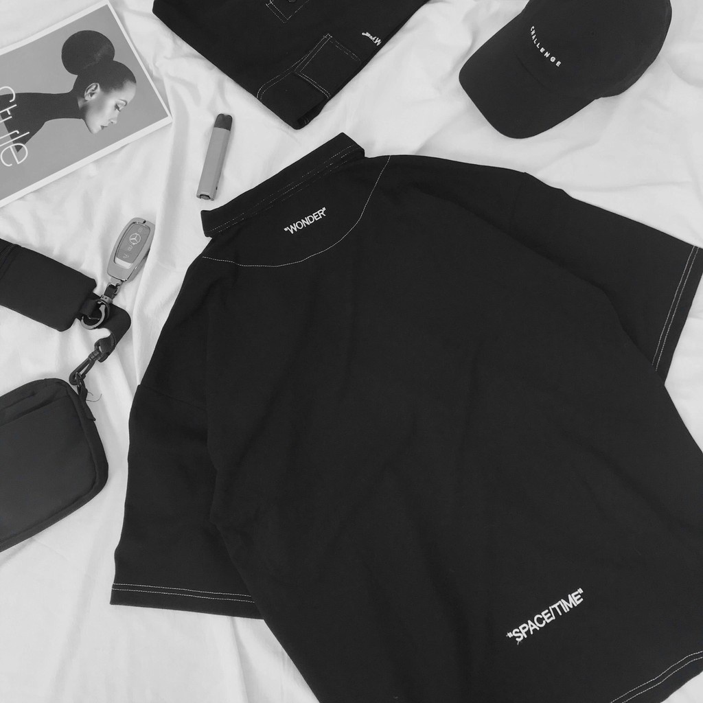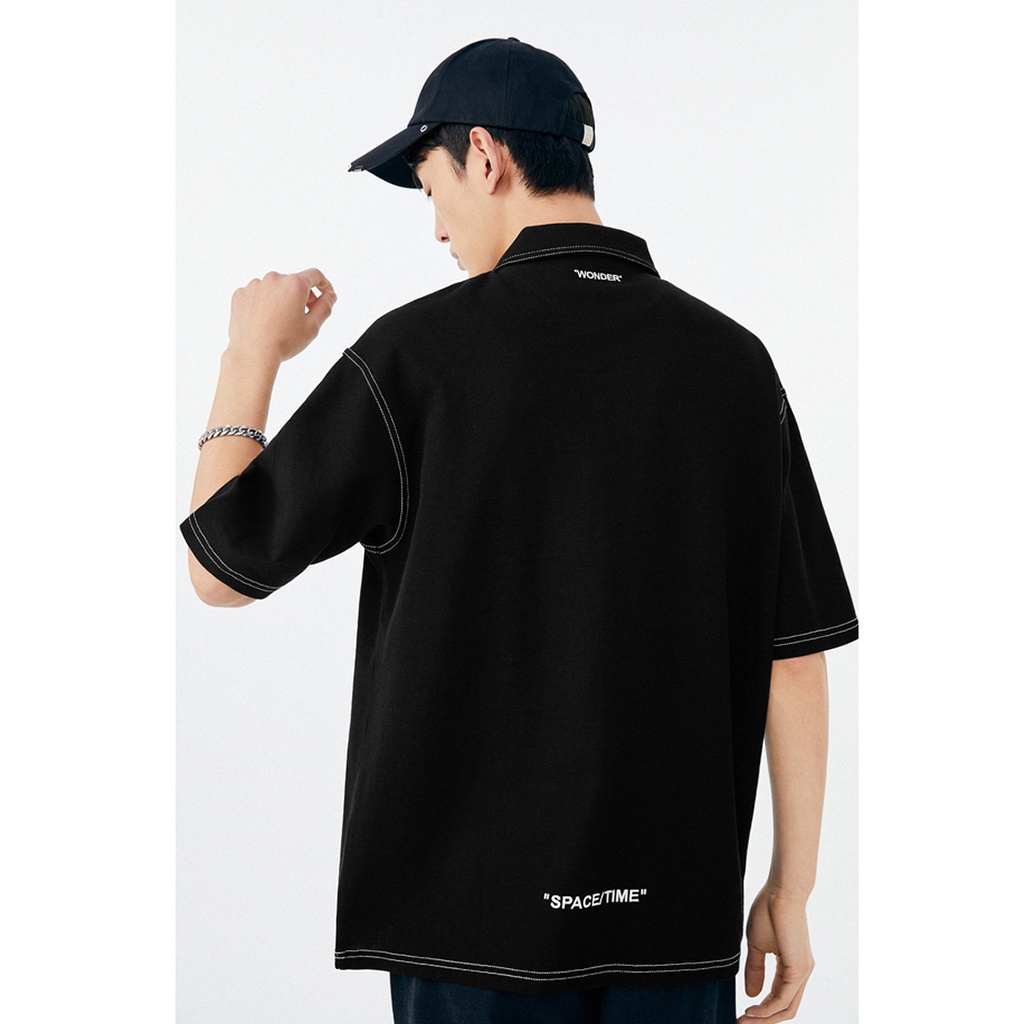 Áo Thun Polo Tay Lỡ Form rộng WONDER màu ĐEN/TRẮNG - Áo thun có cổ Form Nam Nữ Unisex ❤️