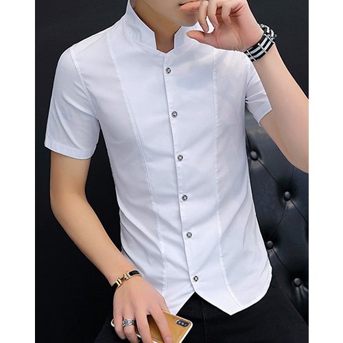 Áo sơ mi, Áo sơ mi nam cộc tay cổ đứng, phong cách trẻ trung năng động, lịch lãm N20 hàng thiết kế cao cấp 👉Chất liệu: Áo sơ mi được làm từ Vải non nhật mềm, thấm hút mô hôi tốt. 👉Không nhăn, không nhàu, vải đứng form. 👉 Chất vải đẹp, không xù lông, không phai màu. 👉