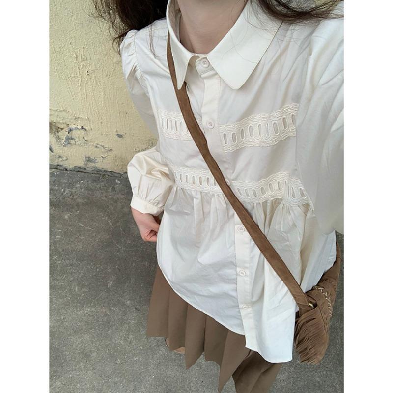 Áo Sơ Mi Có Cổ Tay Phồng Dáng Rộng Phong Cách Hàn Quốc Hàng Mới Mùa Thu Cho Nữ
