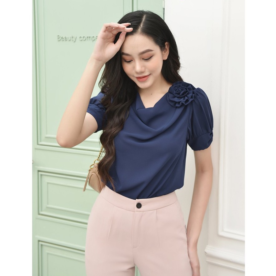 Áo sơ mi công sở nữ LAVENDER cổ đổ đính hoa vai cao cấp A064
