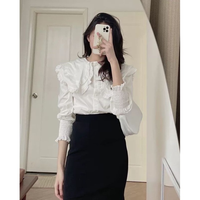 Áo sơ mi cổ bèo tiểu thư tay bồng loe mẫu mới mịn mát hàng chuẩn loại 1