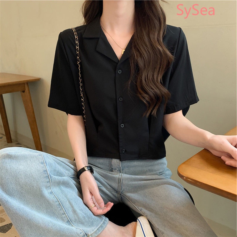 Áo Sơ Mi Tay Lửng Phồng Cổ Chữ V Màu Trơn Thời Trang Hàn Quốc Dành Cho Nữ