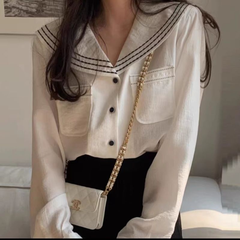Áo sơ mi cổ thủy thủ viền chỉ nổi vintage hàn quốc
