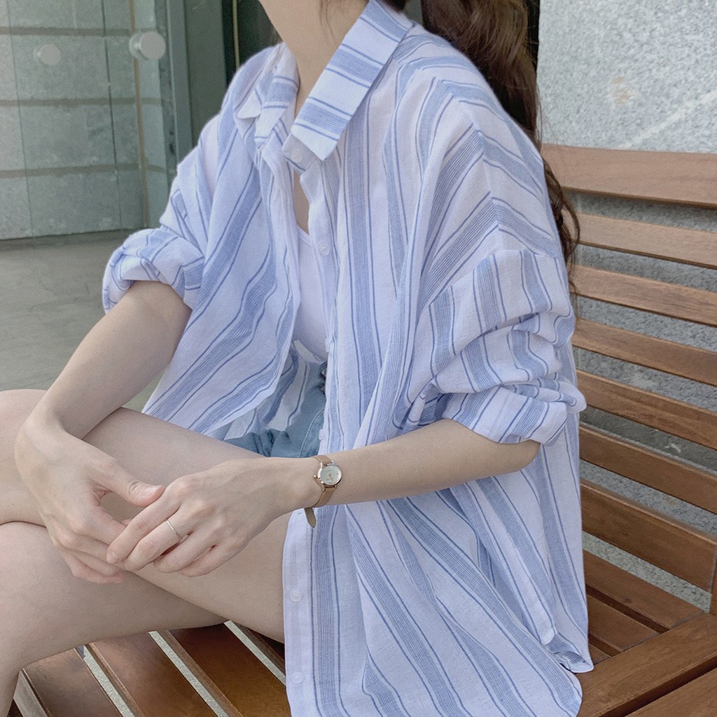 Áo Sơ Mi Chống Nắng Tay Dài Dáng Rộng Kẻ Sọc Phong Cách Hàn Quốc Đơn Giản 43146