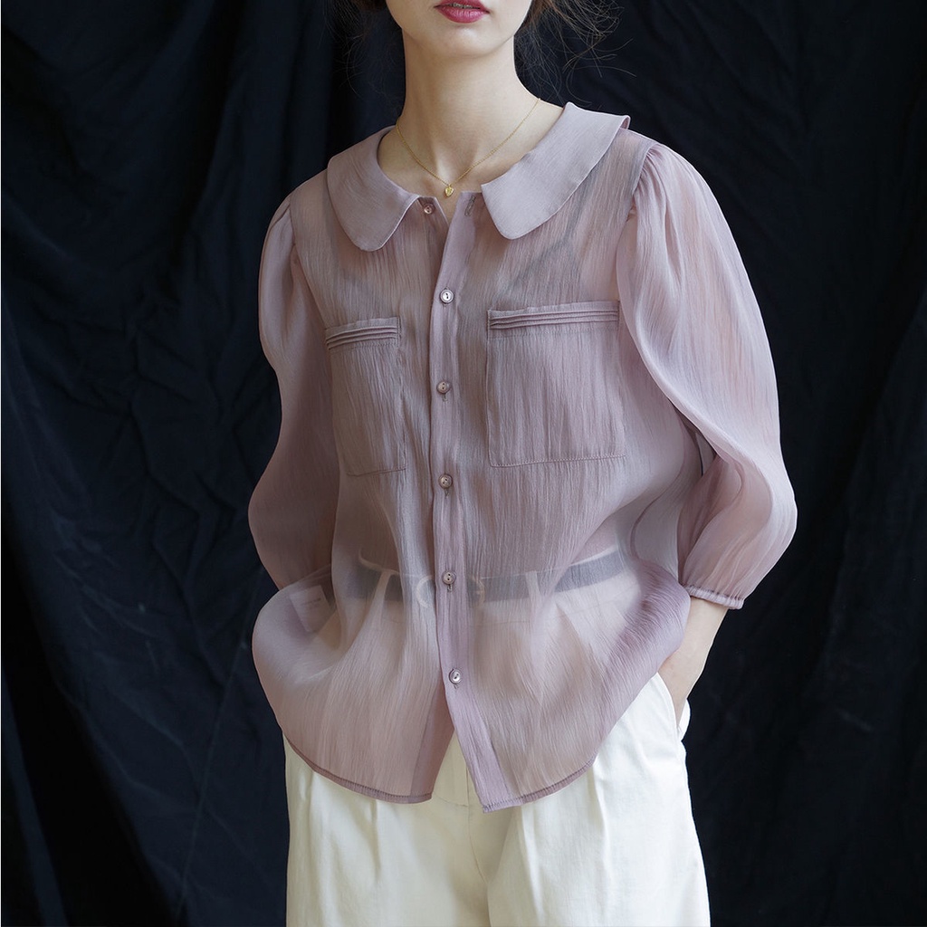 Áo sơ mi chiffon chống nắng màu sắc thời trang phong cách Hàn Quốc cổ điển