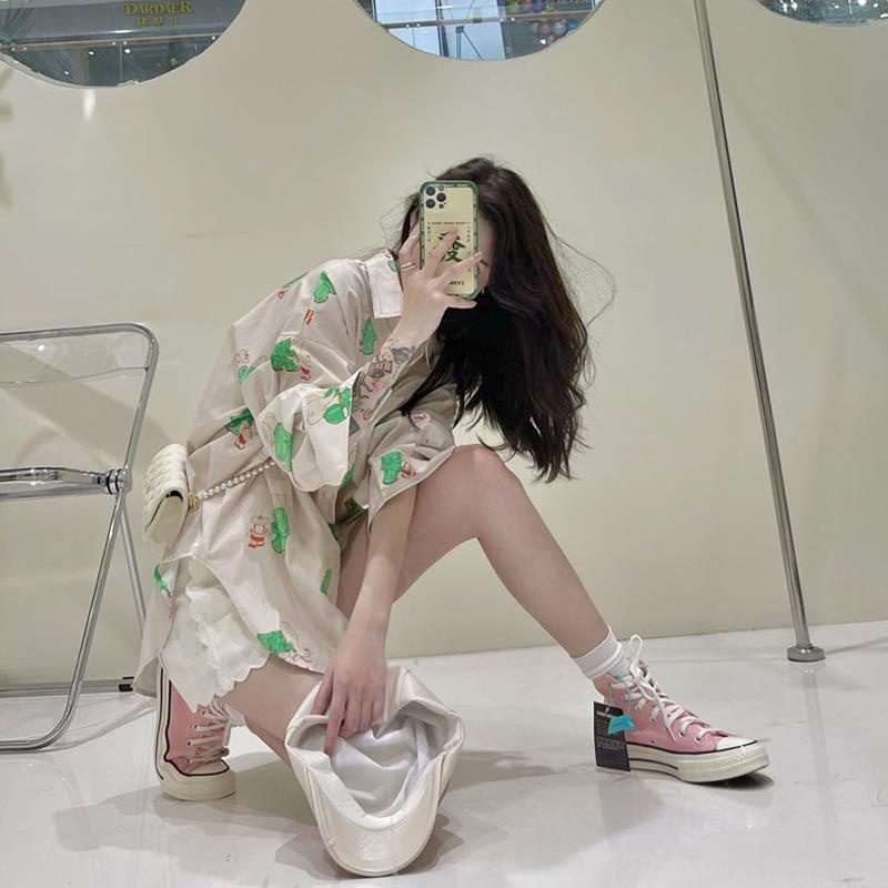 Áo Sơ Mi Dáng Rộng In Họa Tiết Hoạt Hình Phong Cách Hàn Quốc Cổ Điển Thời Trang Dành Cho Nữ 2022