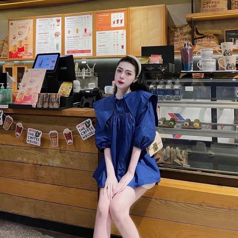 Áo Sơ Mi Form Rộng Xanh Coban - Áo Kiểu Form Babydoll Xinh Xắn Ulzzang Style