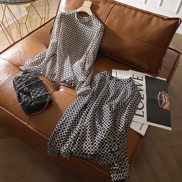 Áo Sơ Mi Giả Lụa Tay Dài Dáng Rộng Cổ Cao In Họa Tiết Hình Học Thanh Lịch Thời Trang Mùa Hè