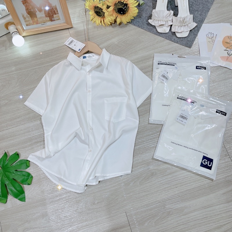 Áo sơ mi GU nữ tay ngắn có cổ màu trắng đủ size