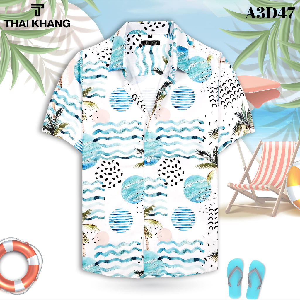Áo sơ mi tay ngắn hoạ tiết hoa tiêu vải lụa mango áo cuban shirt ngắn tay cổ vest mùa hè