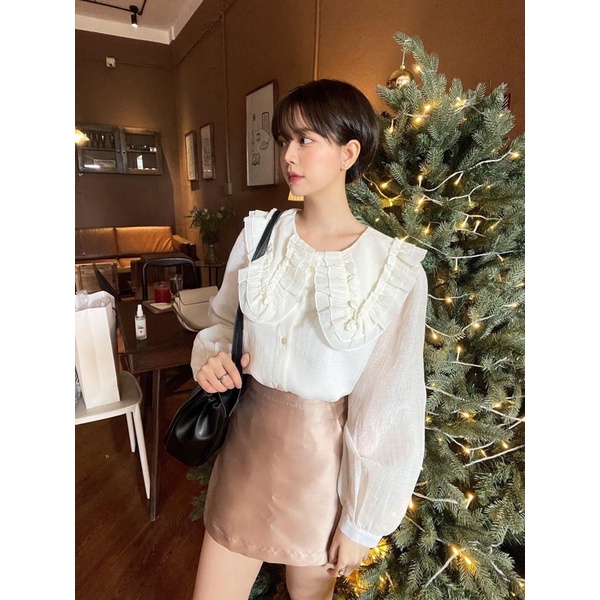 Áo sơ mi nữ cổ sen bèo nhọn cách điệu tay bồng chất voan tằm cao cấp - Sofie Top - Tyribee Clothing