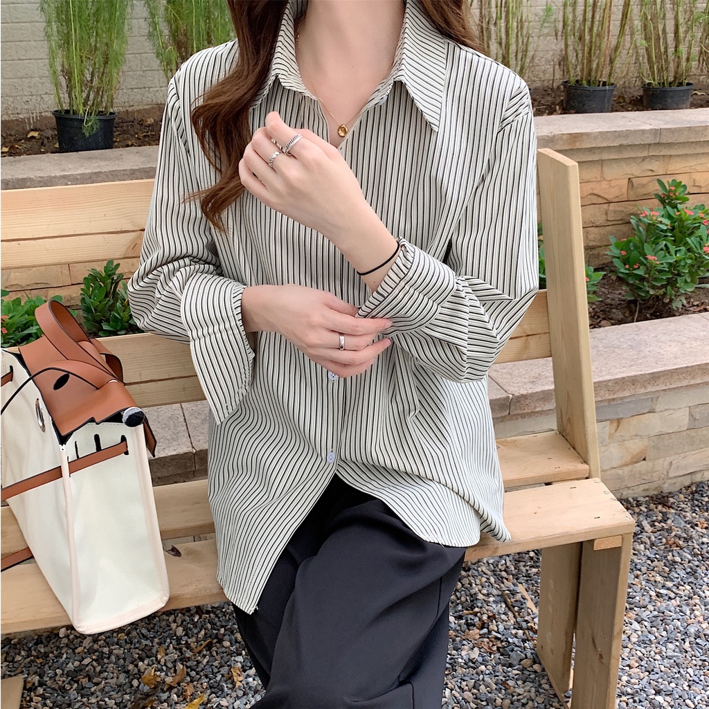 Áo Sơ Mi Nữ Dài Tay Chống Nắng Dáng Rộng Họa Tiết Kẻ Sọc Thiết Kế Mới Mùa Hè
