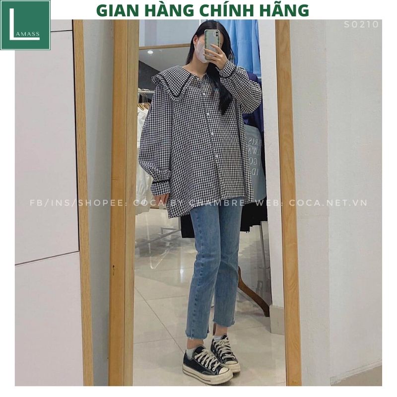 Áo Sơ Mi Nữ form rộng 2 mầu cổ sen kiểu dáng hàn quốc tiểu thư dễ thương đẹp dài tay ulzzang vintage -LAMASS