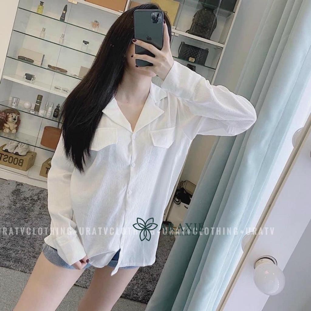 Áo sơ mi nữ form rộng Araxie sơ mi nữ kiểu dài tay màu trắng cổ vest dáng Hàn Quốc công sở bánh bèo ASM0122
