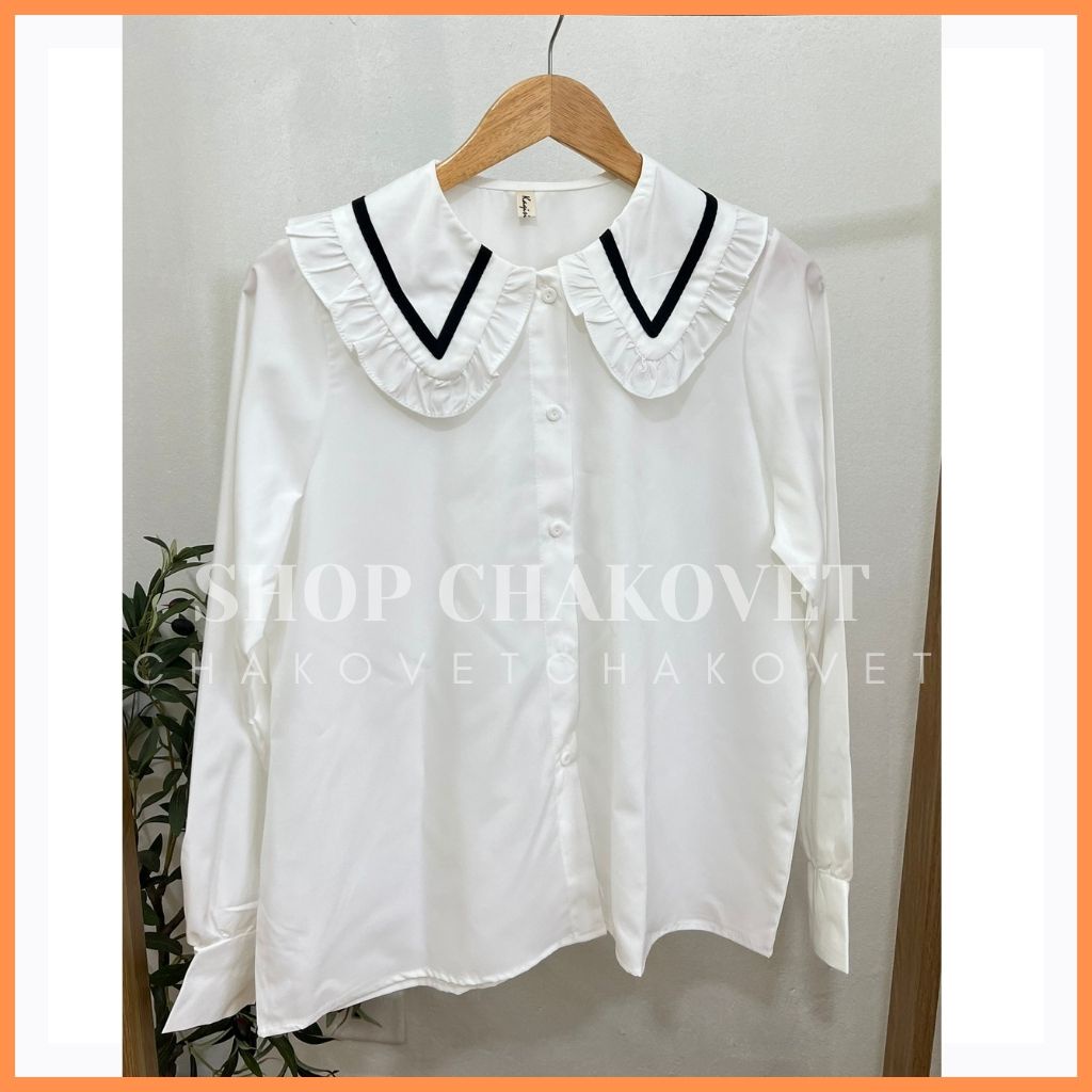 Áo sơ mi nữ kiểu cổ bèo viền đen A8142 màu trắng dài tay phong cách thời trang hàn quốc trẻ trung cá tính freesize <55kg