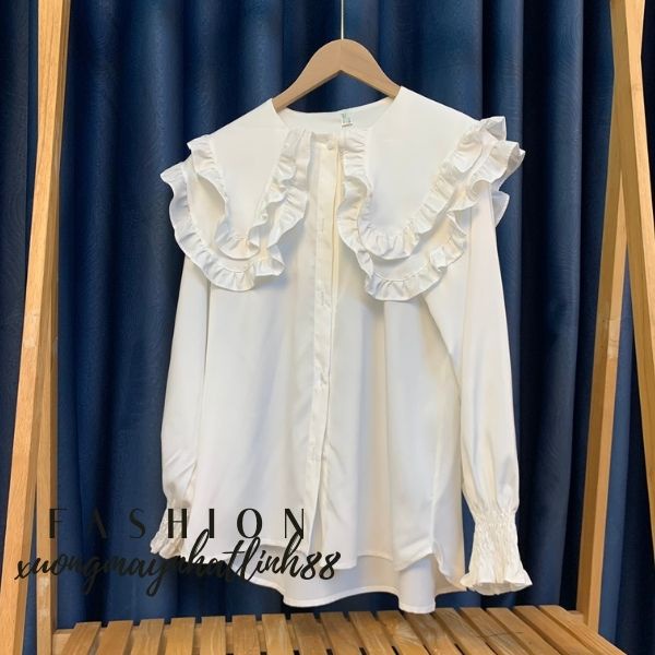 Áo sơ mi nữ NHẬT LINH áo sơ mi dài tay thiết kế cổ phối bèo tay phồng nữ tính tiểu thư - A558