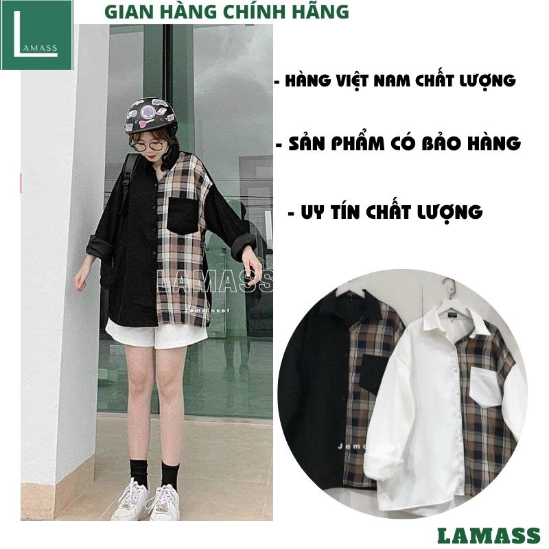 Áo sơ mi nữ phối kẻ caro túi hộp form to rộng unisex ulzzang cực xinh vitage -LAMASS