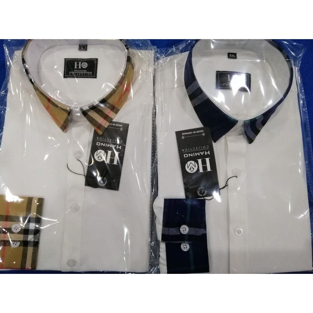 Áo sơ mi nam dài tay phối kẻ ca rô tay và cổ cực sang cực chất