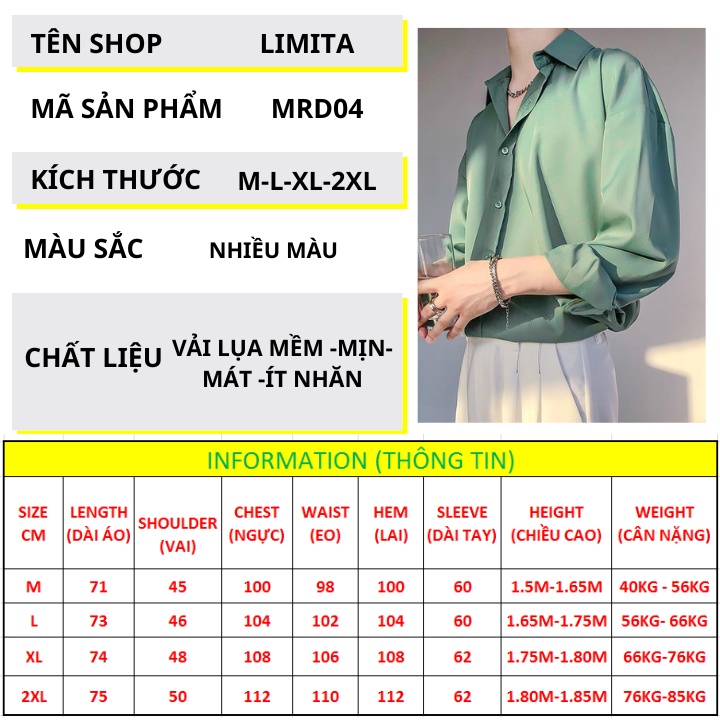 Áo sơ mi nam nữ Oversize dài tay form rộng kiểu hàn quốc trẻ trung vải lụa mềm mịn mát-MRD04