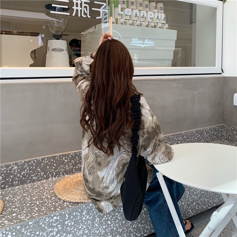 Áo Sơ Mi Tay Dài Dáng Rộng In Họa Tiết Mực Độc Đáo Phong Cách Hàn Quốc Thời Trang Mới Cho Nữ