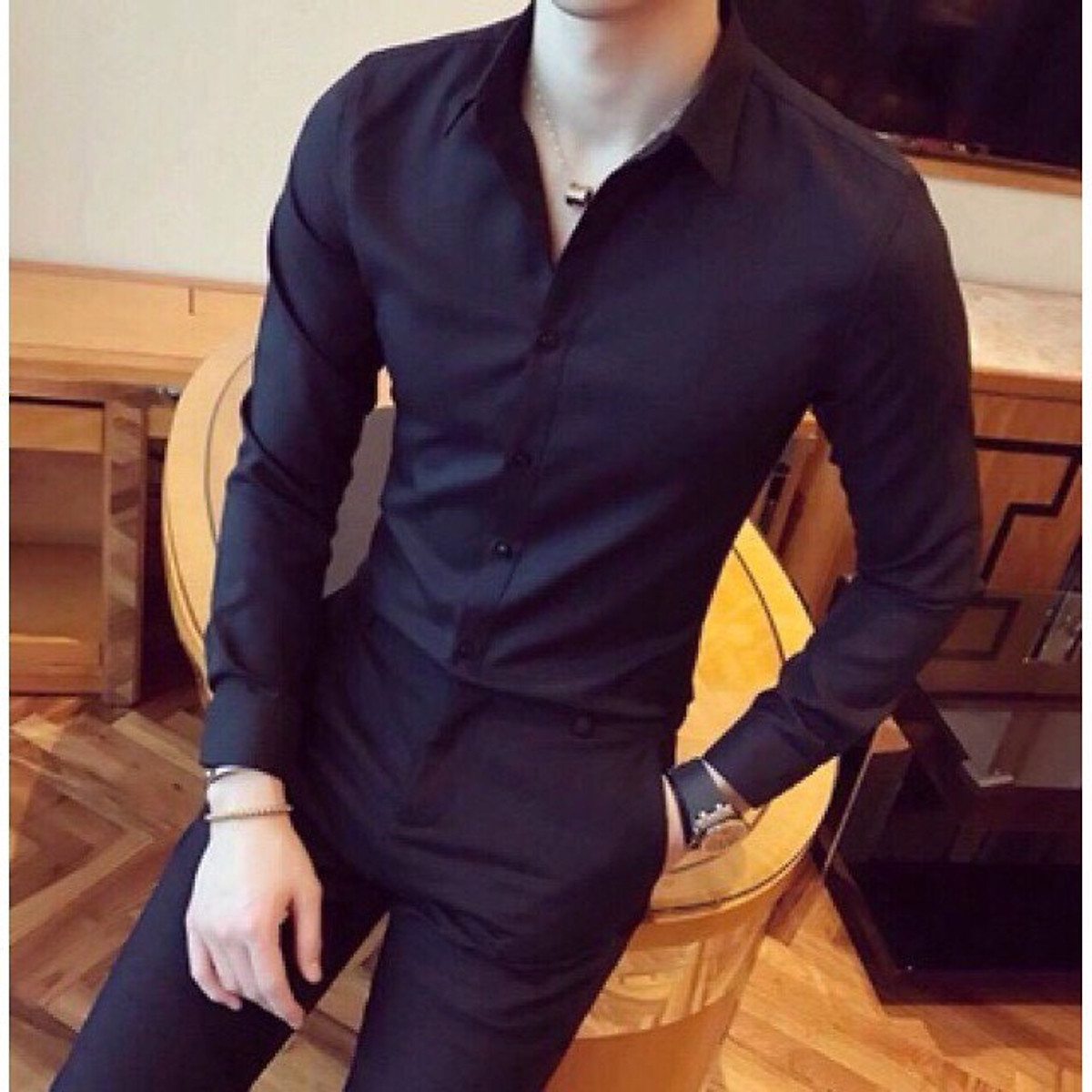 Áo sơ mi tay dài hở vai dáng rộng phong cách Hàn Quốc dễ phối đồ thời trang cho nữ