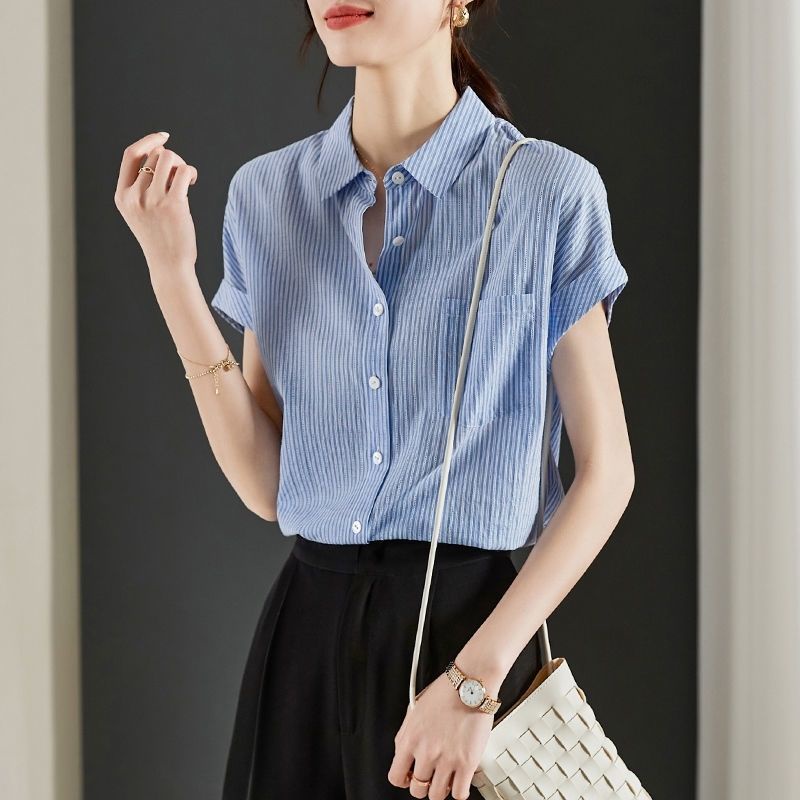 Áo Sơ Mi Tay Ngắn Cổ Bẻ Họa Tiết Kẻ Sọc Thời Trang Dành Cho Nữ