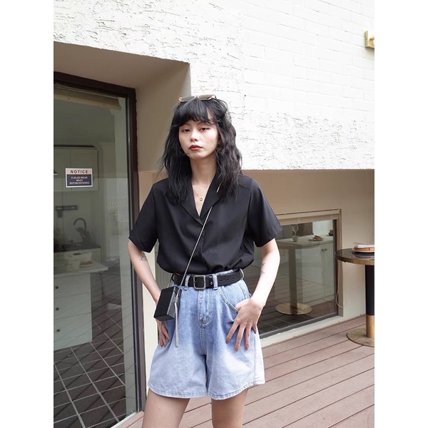 Áo Sơ Mi Tay Ngắn Nam Nữ Form Rộng- kiểu áo sơ mi cổ vest unisex chất vải lụa Ulzzang