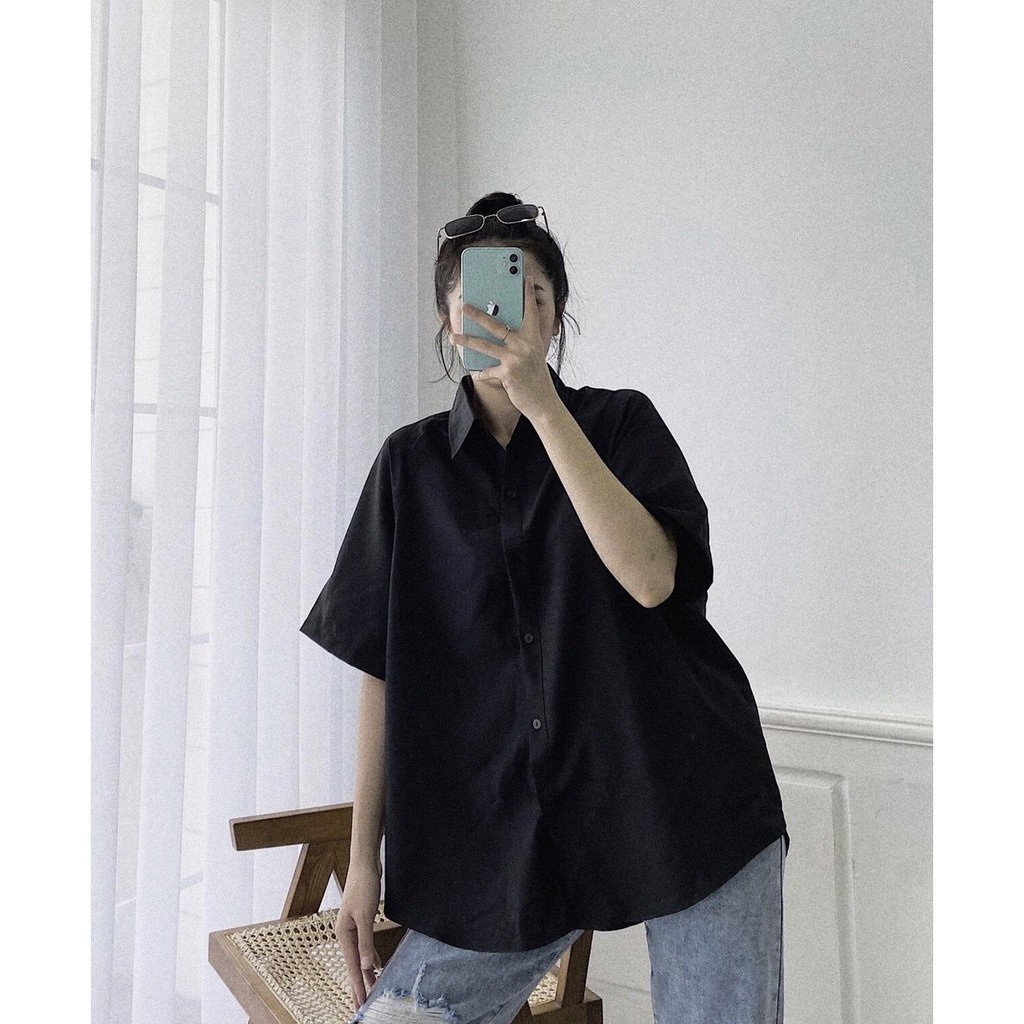 Áo sơ mi tay ngắn nam nữ form rộng, sơ mi cộc tay unisex Hàn Quốc, chất vải lụa dãn Teechan